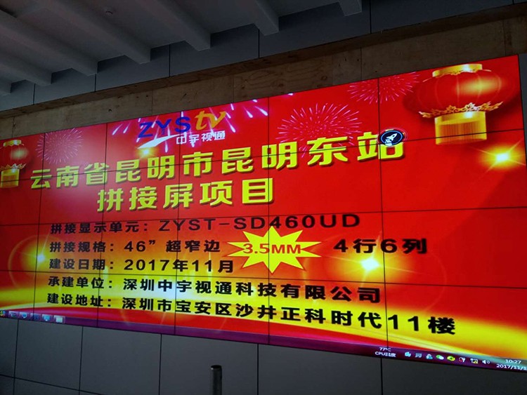云南昆明市昆明東站選擇中宇視通46寸*3.5拼縫拼接屏項目。