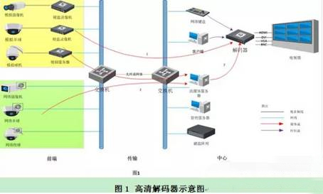 一個完整的高清監控系統,必須涵蓋前端、傳輸、后端以及中心各個環節,缺一不可。其中,前端負責高清圖像的采集,傳輸負責高清圖像的輸送,后端負責高清圖像的存儲,中心負責高清圖像的顯示和業務的管理。可以說,一套高清監控系統,真正給用戶體現直觀價值的就在于中心的圖像高清顯示,而這離不開高清解碼器。