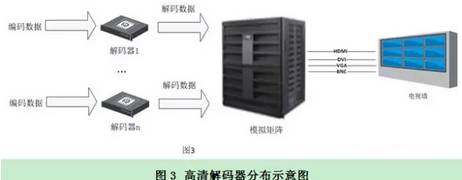 對于中大型規模電視墻,顯示控制設備一般為模擬矩陣或數字矩陣,那么高清解碼器主要負責接收網絡編碼數據并解碼,然后將解碼后的數據作為矩陣的輸入。