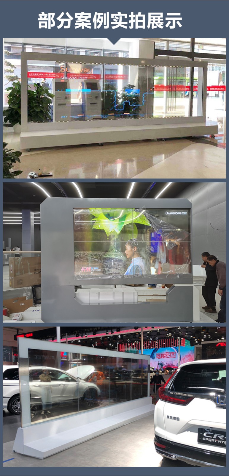 OLED透明顯示屏采用發(fā)光透明的有機OLED顯示屏,當關閉屏幕后,它呈現出透明玻璃的視覺質感,與環(huán)境和諧融洽,極具未來感的設計,可以給使用者驚艷的視覺感受。OLED透明顯示屏可根據客戶環(huán)境不同,定制不同造型的產品從而滿足客戶不同的需求,無論是智慧化辦公還是高級商場、銀行等建筑物,都可以通過定制化為企業(yè)及產品提升自身形象。