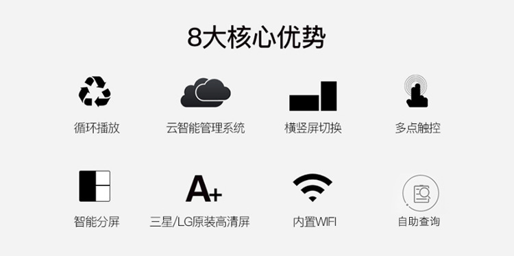 工業(yè)級(jí)電源系統(tǒng),自帶恒溫散熱系統(tǒng),可滿(mǎn)足24*7連續(xù)不間斷開(kāi)機(jī)播放。