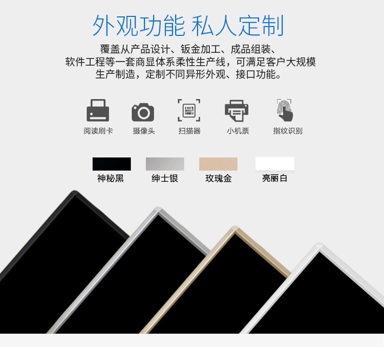 外型時(shí)尚,仿蘋(píng)果式外觀,銀色鋁合金邊框設(shè)計(jì),全金屬外殼,整機(jī)美觀、大方、高檔;