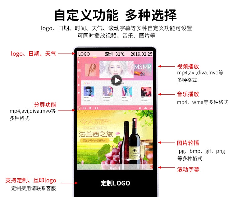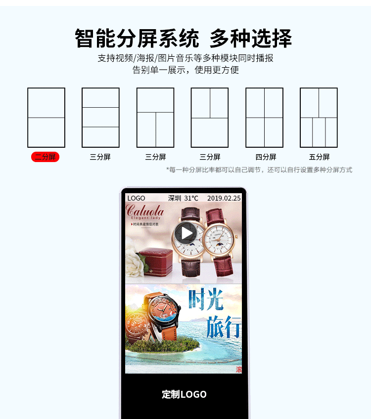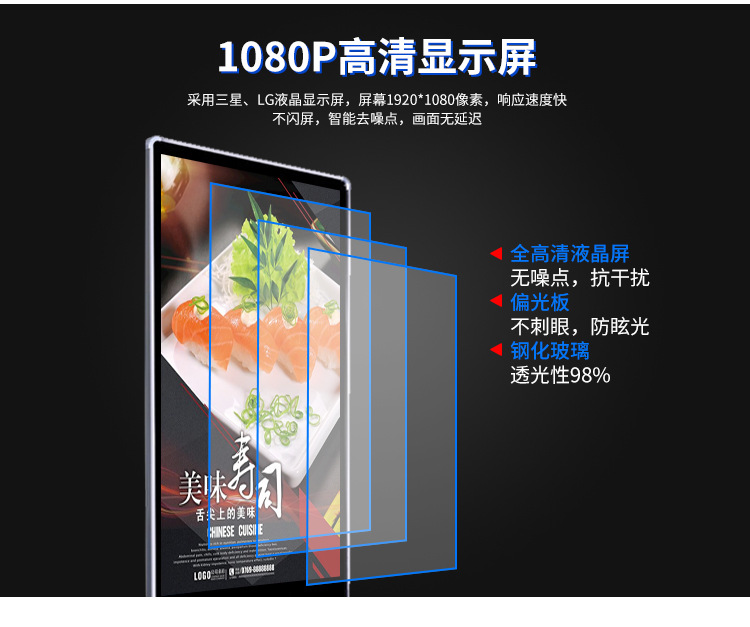原裝進口品牌LED高清顯示面板制作,畫質顯示更清晰,功耗更低。